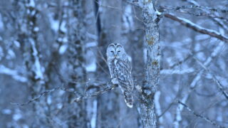 野鳥日暮れ前のエゾフクロウ 個人的にエゾフクロウを撮影に行っても、ガイドで行っても、何でなのかは分かりませんが、気配がない日がある。そんな時は、タイミングを変えて、夕方や暗くなる直前のタイミングでフクロウに出会える時があることがありますこういう出会いも大切ですね・・・ 2026.02.04野鳥